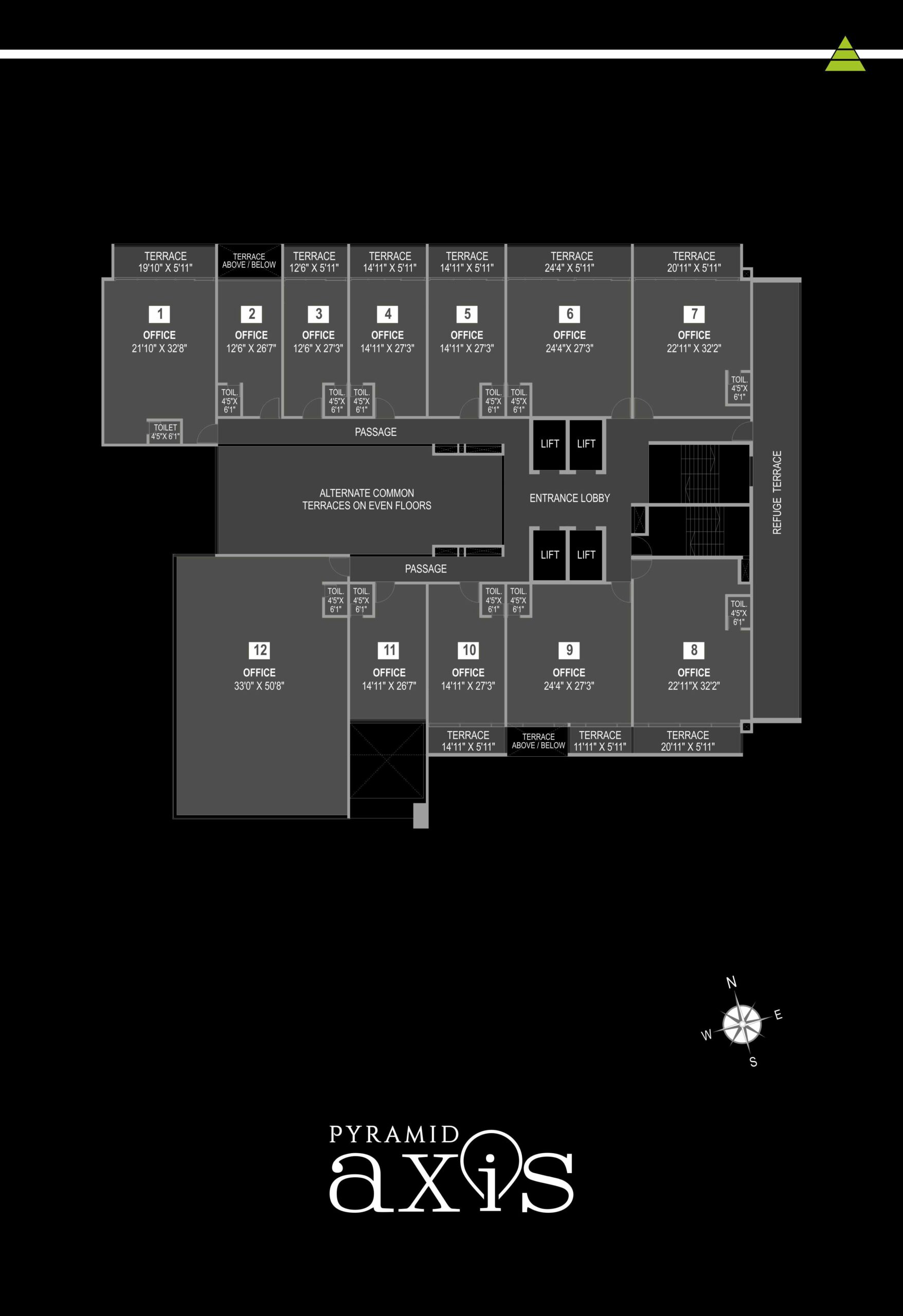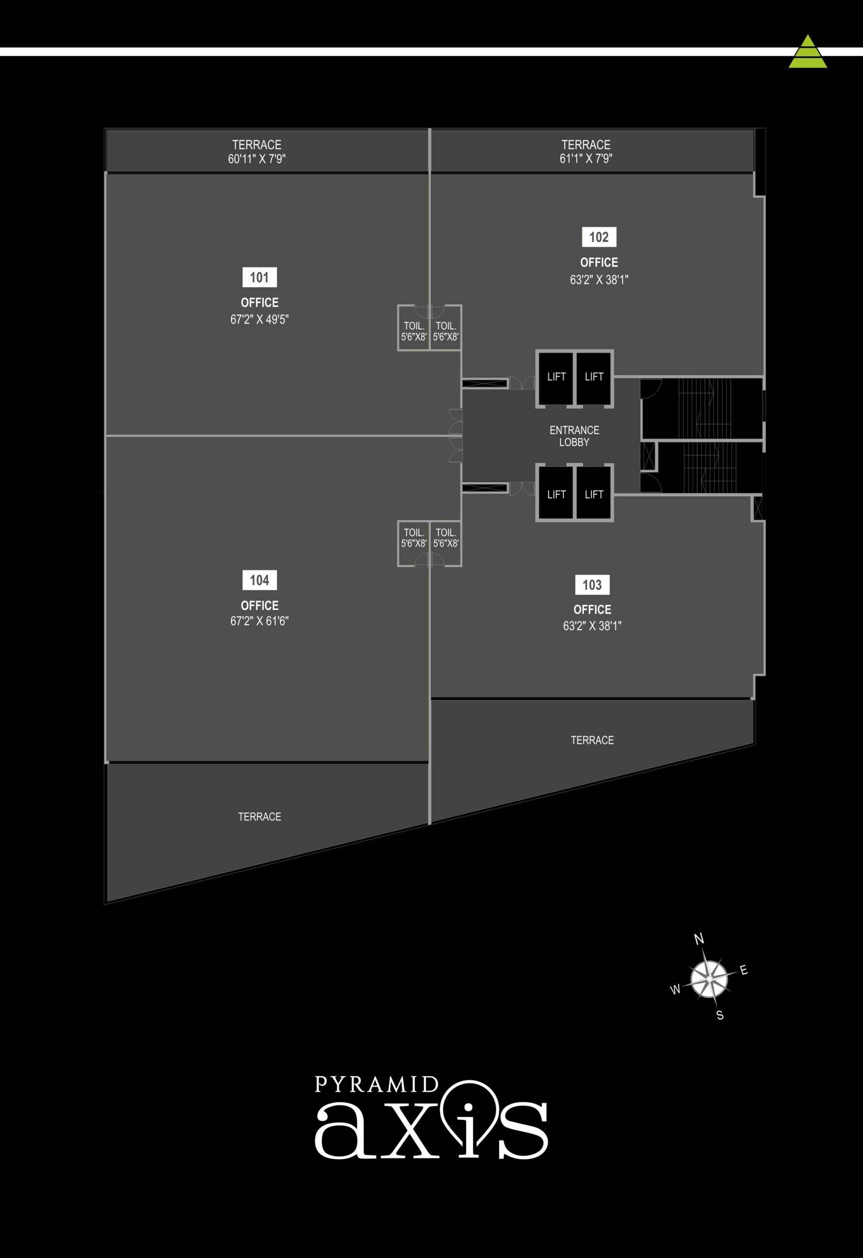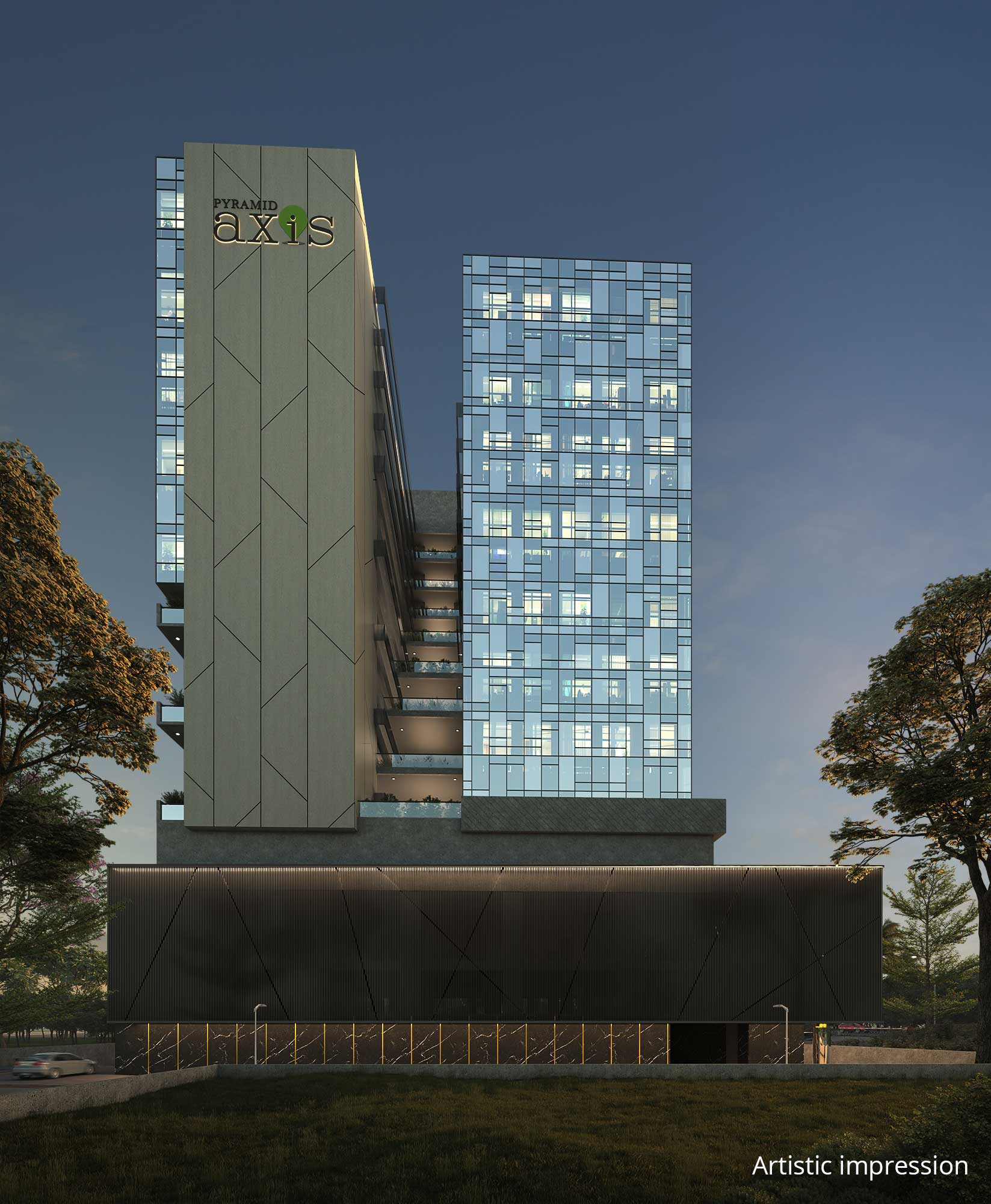 Pyramid Axis, office spaces offering a predominant architecture right in the city’s most refined and colonized area designed for the one and all with peerless facilities. From the prolific foyer, the dynamic co-working spaces, to the elegant forum rooms that are intricately executed keeping in mind the sophistication required by people who aspire to thrive.